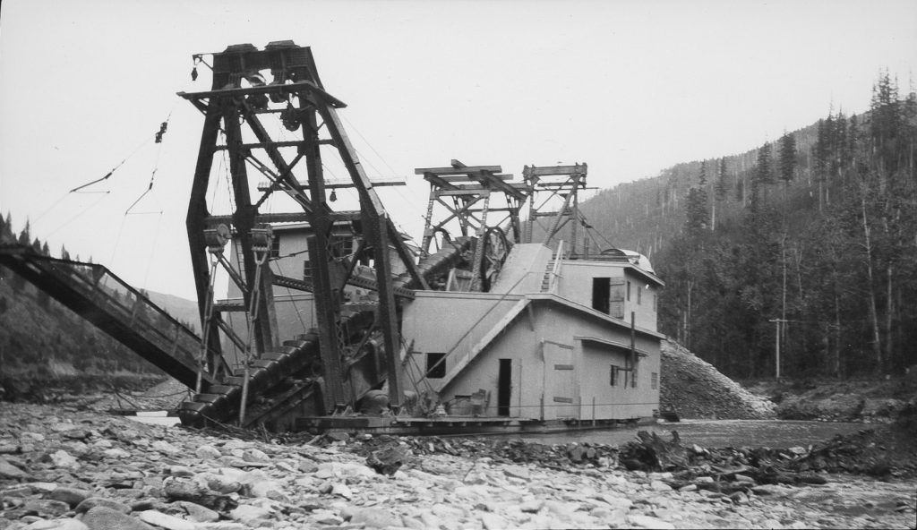 In 1879, AJ Prichard discovered gold in Prichard Creek, setting off the mining rush in the Coeur d’Alene basin. Prichard Creek is a tributary to the North Fork Coeur d’Alene River and was the site of several hard rock mines and mill sites in the 1900s. Placer and lode mining dominated the early mining efforts until a large dredge was brought in from Alaska by the Yukon Gold Company in 1917, operating until 1926. The massive dredge was 106 feet long, 44 feet wide, and 6 stories tall. It worked 24 hours a day, manned by a crew of 12. Reports indicate that it dug down in excess of 20 feet into the river bed. The dredge turned over about five miles of the creek and floodplain, leaving behind a barren landscape of tailings. The disturbance altered the stream channel, causing water to flow subsurface and impairing the habitat and river function throughout the entire length of Prichard Creek to the confluence. Today, an approximately 3 mile section of the creek near the town of Murray loses water for a portion of every year. Westslope cutthroat trout and other native fish species persist in Prichard Creek, but lack the connection to the headwaters upstream.